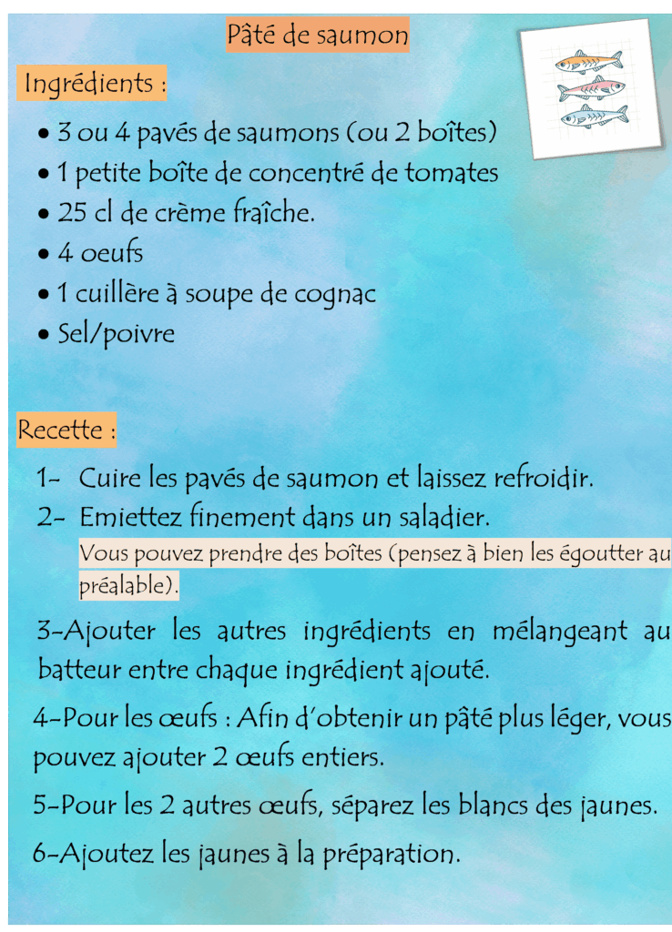 Un petit pâté de Saumon simple à réaliser et à déguster chaud ou froid.